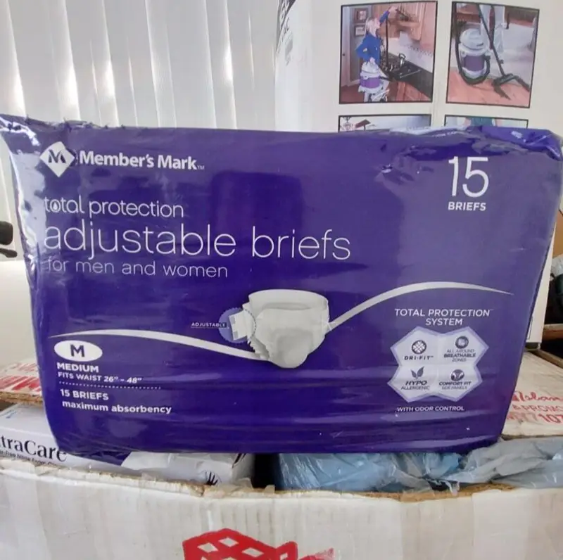 • Adult diapers in various sizes (small to XXL)