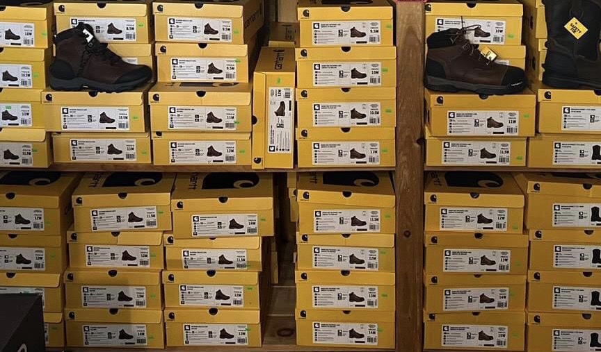 Carhartt Steel Toe Puncture-Resistant Work Shoes keep your feet safe and meet safety standards for USA. Carhartt boots pallet.